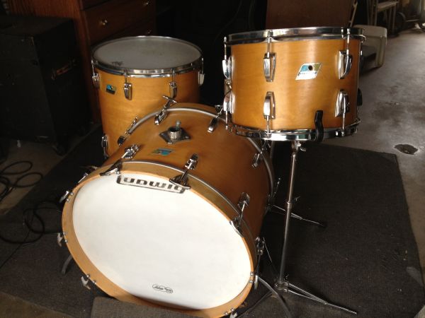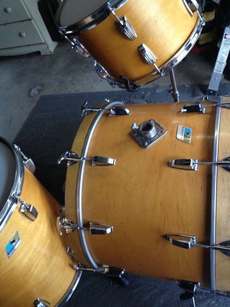 finish kit for sale! I have it on C.L. Los Angeles,and Fee-Bay too,with plenty of "trade" offers...But im looking for Cash(paypal)...willing to ship(on your dime)and or meet up. And now for the good stuff...3Ply maple inner/outer shells in Fantastic shape! 22-original thermo finish,flange,tees/claws,factory drilled for 1/2" spurs,9XXXXX blue/olive badge,1-repro matching finished hoop...16-matching refinished maple/amber lacquer,hoops,rods,lugs all ludwig,pre serial blue/olive badge,factory edges-sharp and level,minus muff...13-matching refinished amber/maple lacquer,hoops,rods,lugs all ludwig,9xxxxx blue/olive badge,factory edges-sharp and level,minus tom bracket,and muff...these drums tune up super easy,and sound every bit as a 3 ply shelled drum set should! i was VERY surprised!!!