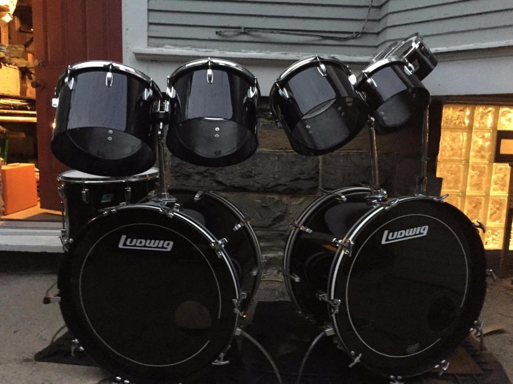 This is a monster of a kit. Dimensions are two 24x14 bass drums, 18x16 floor tom, and 6,8,10,12,13,14 concert toms (missing the 15 and 16). The price comes with everything you see in the pictures (including the stand and tom posts). The hardware is all period correct and in working order. There is no spiderwebbing or cracking, although there was seam separation on the 6 and 8 (which is common for those sizes) which I repaired and is as strong as ever. These date to 1977 or 1978 - if you'd like I can send along all the serials (they all start with 16------). There are some scuffs and scratches per the norm, and some pock marks on the hardware, but I cleaned and polished it all so it shines. I'd be happy to send along pictures of anything specific that you'd like to see. I tried to describe the drums as best I can, but please let me know if you have any questions.