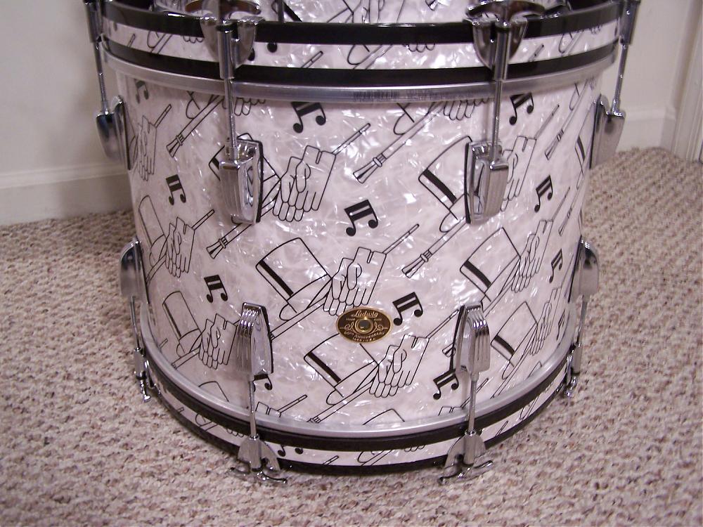 Ok, Long story short, I owned this set once before and sold it about 4 years ago for personal reasons. I regretted it. So, I got a phone call informing me that the set was once again for sale, so I bought it back. It is a 1967 Ludwig Jazzette set that the original owner had special ordered the 3 X 13 snare drum with it. The other drum sizes are the standard 8 X 12, 14 X 14 and 12 X 18. The drums original finish was in sad shape, so the owner had Jack Lawton cover these drums with the 90th Anniversary Top Hat wrap. The drums now have the 90th Anniversary oval badges, special thanks to a friend that works at Ludwig. It previously had newer, large Keystone badges which I thought looked out of place on these drums. I will be playing these daily, so I am using clear Evans heads all the way around, with the exception of the front bass drum head. Let me know what you think!