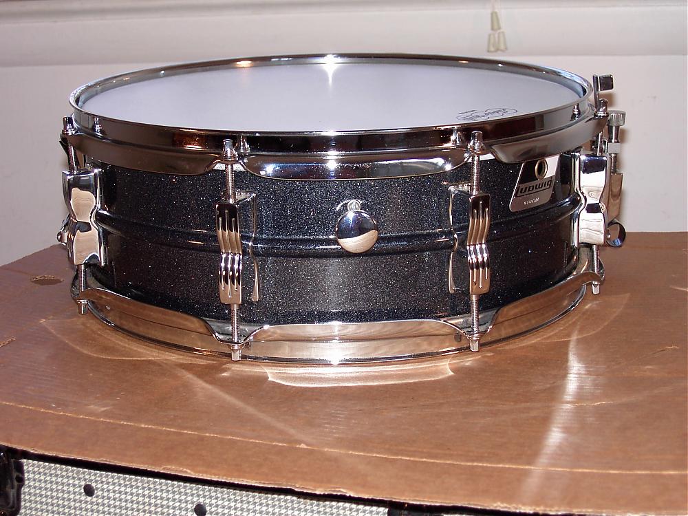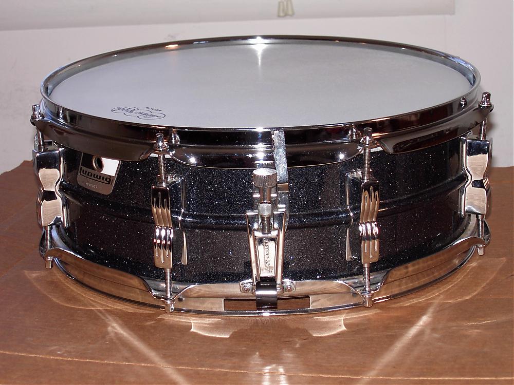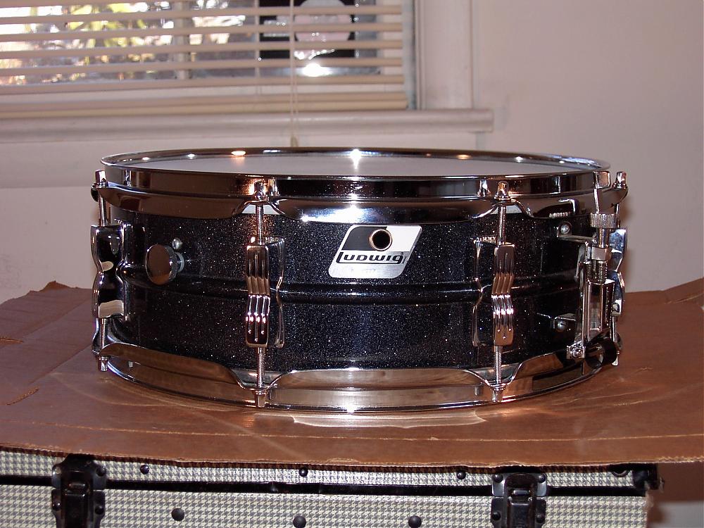 FOR SALE: Ludwig 5x14" 8 lug Blackrolite snare drum this is a very clean example the hardware only has some scuffs on teh rims, and only a few lugs have some marks on them,, for a 90's model this is a clean drum, it has a brand new Ludwig Medium coated batter head , stock Ludwig reso side head. puresound blaster snare wires, it sounds fabulous!! $135.00+ship cost