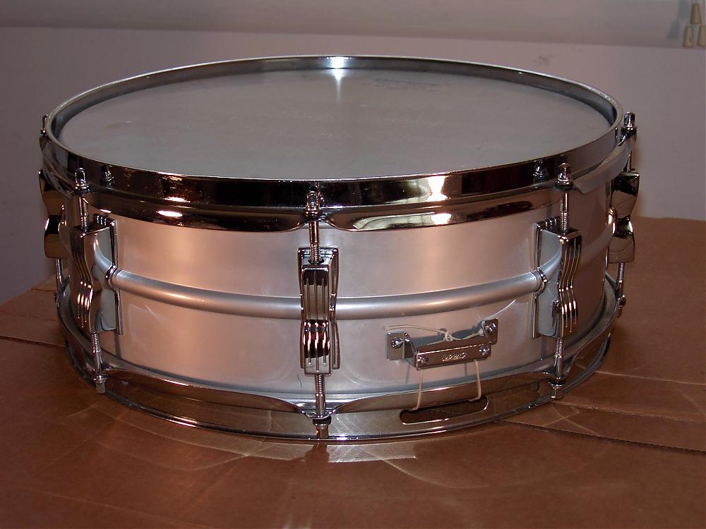 The snare drum has two surface scratches on the shell, all teh chrome is very nice with only slight pittin on some lugs, it is in very nice condition, the bottom snare side head was played on some but still usable