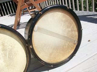 It was played by a fellow who had a jazz trio after the war, nobody notable. The snare is in excellent condition, and was packed away all these years. The only blemish is where the black paint is flaking off of the hoops. Beyond that, the normal wear and tear is not evident on this beauty!