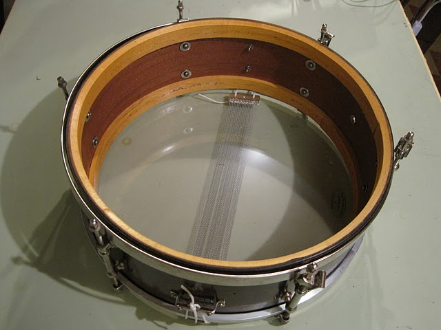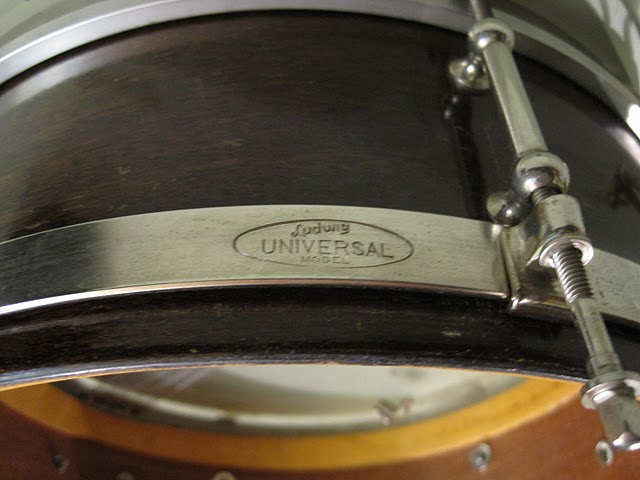 Obviously has the "Ludwig Universal" hoop. The date stamp on the inside says August of 1939, but isn't that Leedy's stamp? Was the same stamp used on Ludwig drums when Conn owned both? Is it normal for this model to have no badge? Nothing burned into the shell...just the Universal hoop.