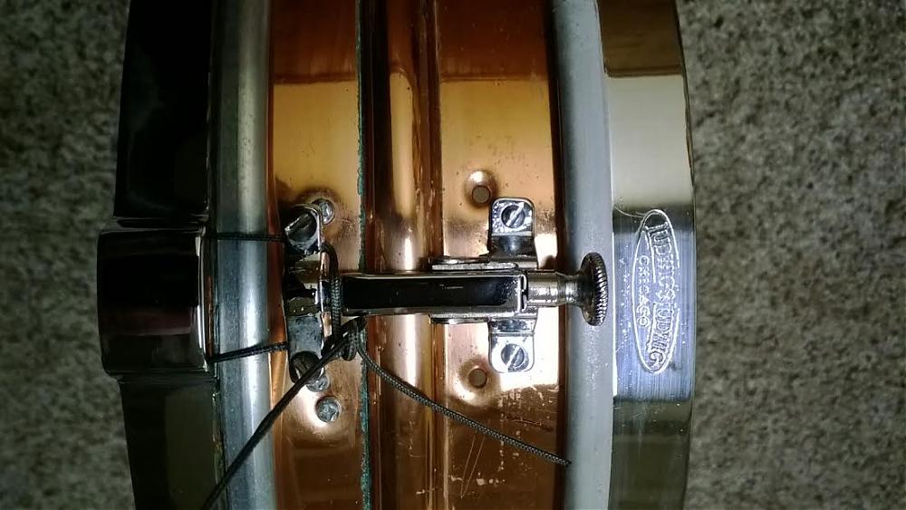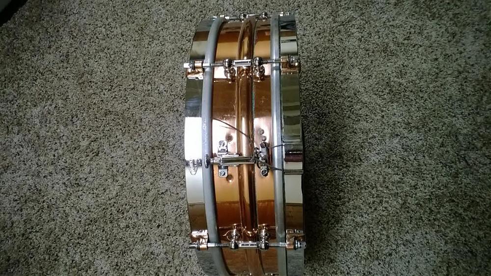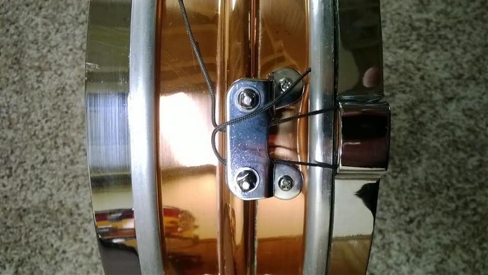 It appears someone refinished this snare with the copper-looking finish, as well as the clips.