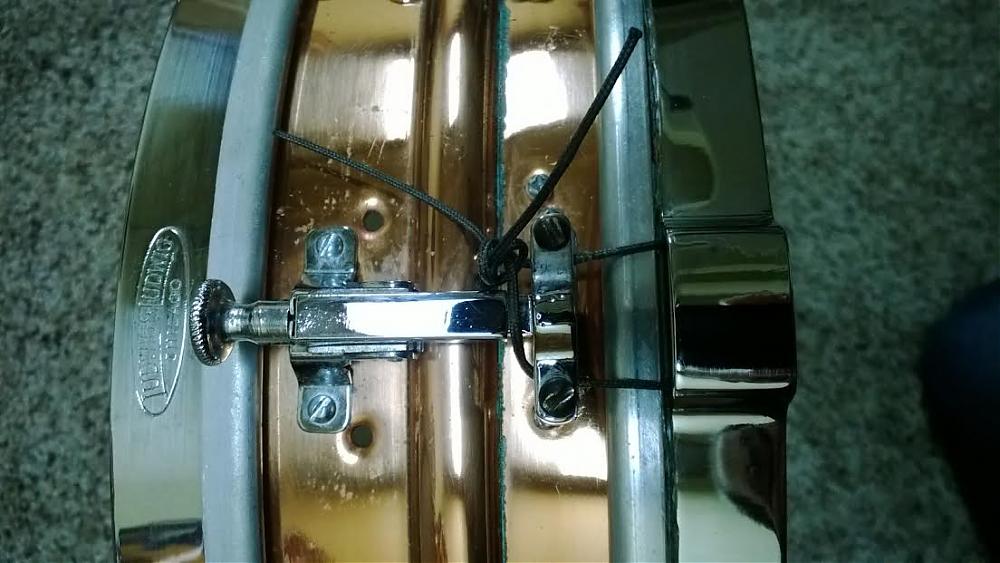 Original strainer, though someone had put a different one before it to create the 2 extra holes (see photos). An alternate butt plate as well, creating 2 other extra holes. "Active Snare System" snares, which sound great, but obviously aren't original.