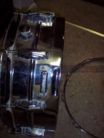 thanks but that's not what I need to see,when you get a chance no hurrry take the bottom head and remove the snare wires and photograph the bottom beariing edge and at the bottom of the strainer and butt end the side of the drum shell where they are both mounted, the drum shell would be crimped if it's brass!