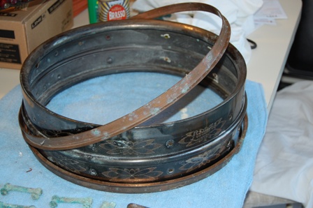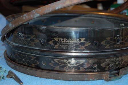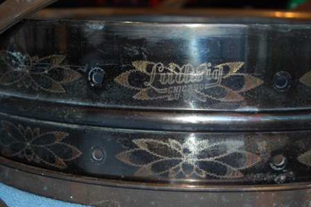 Great forum and website. I am not a drum collector and I am not even a drummer. I was given an old snare drum back in the 1960s from a family friend and have had it in my garage ever since. I just recently pulled it out and started to clean it up. The hardware is all off it and is very green (so I think it is copper (???)). I beleive all the parts are there, but I don't have the time or expertise to put it all togther. It has a Ludwig Chicago engraving on it, but no date or serial number. From the little bit of research on this site and a few others, it appears to be a Black Beauty. It has the "flowers" engraved on it.