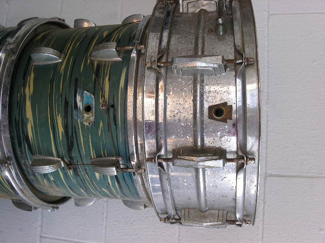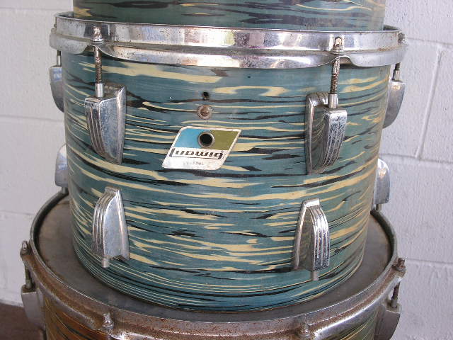 First off, these aren't mine. These belong to Dana Bentley of Bentley's Drum Shop. I conned him into letting us on VDF have a go at these before he puts them on eBay. Also, I'm not making a cent off of these. I'd take them myself, but I already have two Ludwig project kits in like condition, and I'm out of space (and my mind).