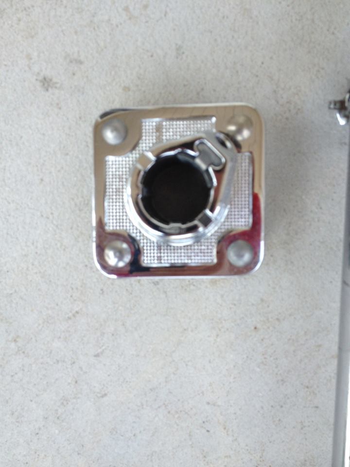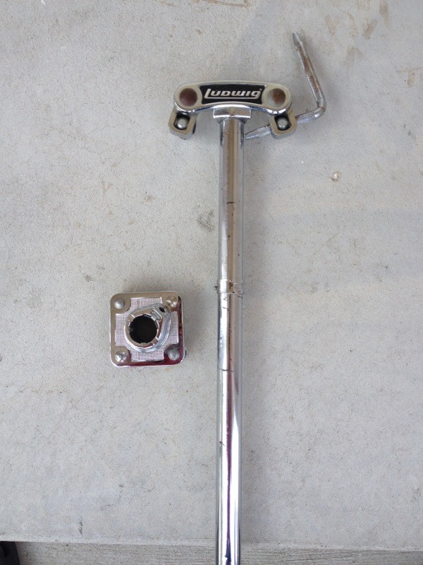 This post is missing one of the arms. It could probably be cleaned up a bit also. Mount looks pretty nice. Missing two of the Ludwig "saucers" on the screws. I think the chrome handle is unoriginal to this also. I think I can ship this for a flat rate of $11-12.