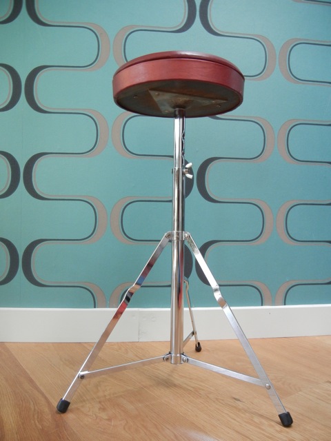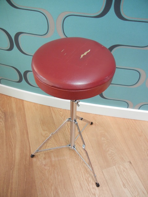 Hi Folks,Yesterday I received the hardware.I started its cleaning, here already some pictures of the throne.The deck is torn but all in all, the thing is in good shape.Any suggestions what to with that seat? Leave it as it is or redo the cover?Any ideas where to find that?The Hi-hat and snare-stand both have Ludwig logo's on them but I couldn't find one on the throne ???