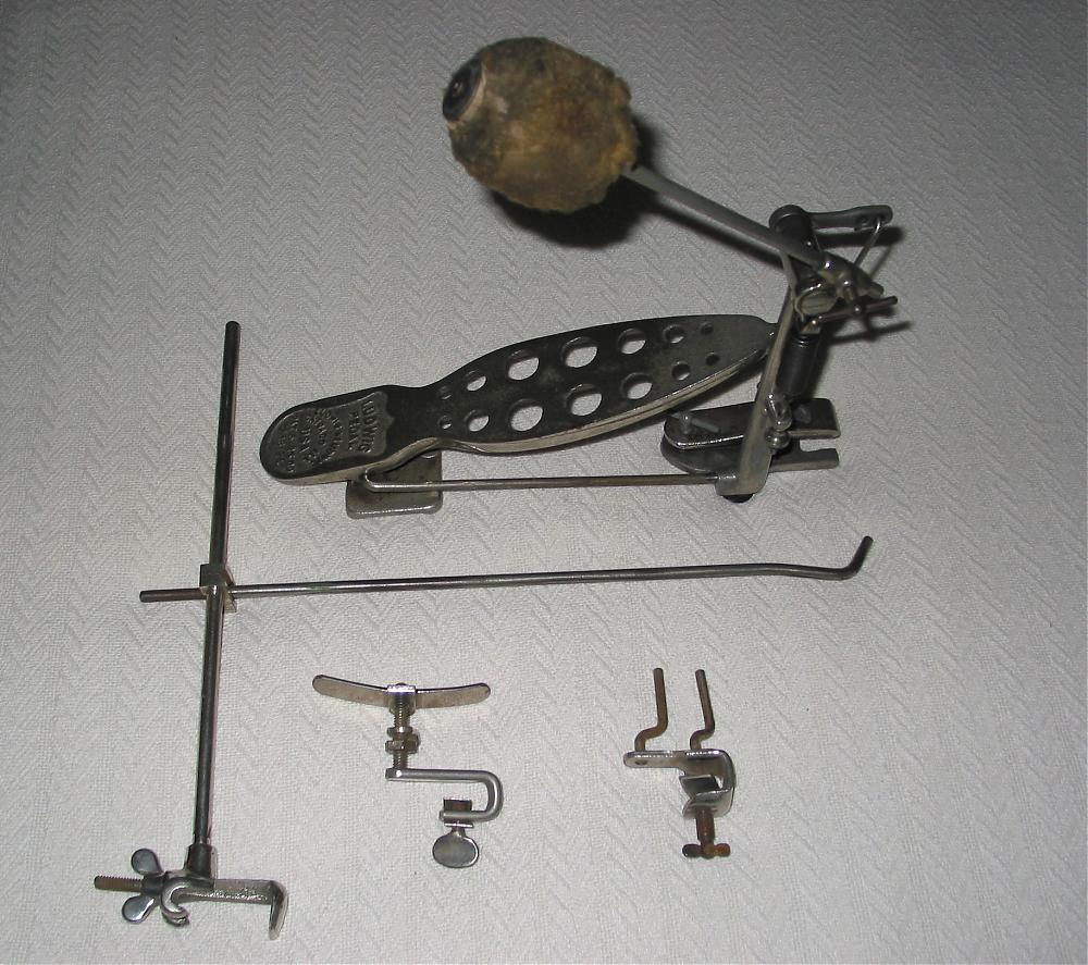 I'm trying to find out any estimated value regarding this Ludwig & Ludwig drum pedal and accompanying drum parts. From what I've gathered through the Ludwig Book and what is apparent, the pedal has an additional stamp dated 7-15-1924 and the other parts include a hanging cymbal holder, a tom holder and what looks like a woodblock holder that would have attached to a console rail, all from around the mid to late 1920's. Thank you for any information and replies.