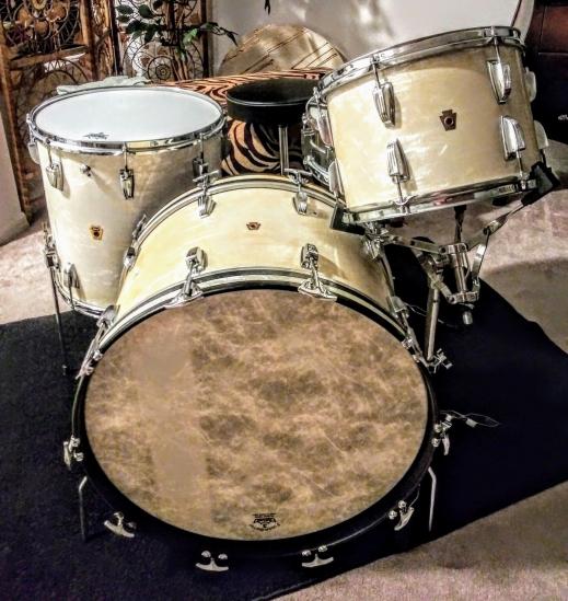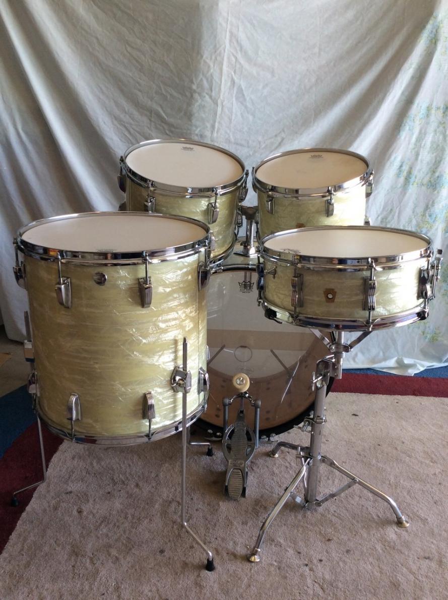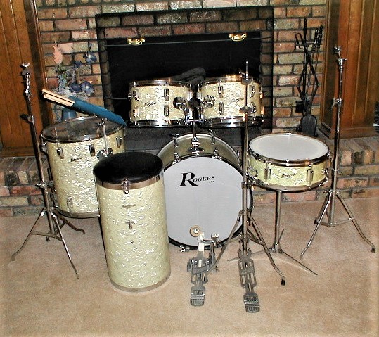 This kit still has the original resonant heads on it, and the bass drum has the earlier style spurs. I find that these hold the drum much steadier than the more common "gull wing" spurs.
