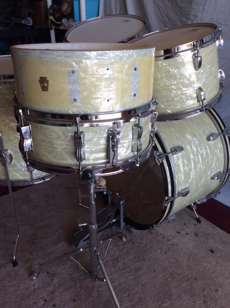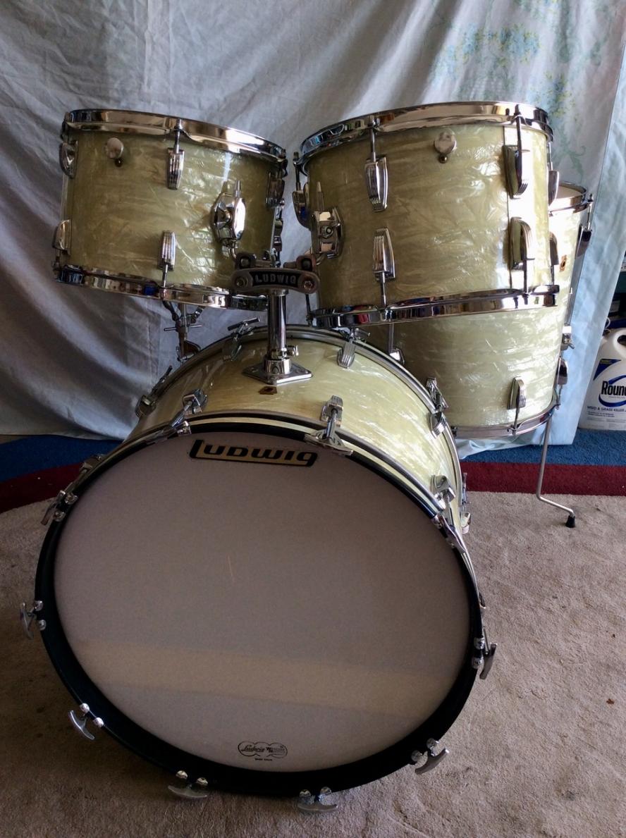 The Jazzfest that came with the kit was dated 1962 and it was nearly as yellow as a banana! Thankfully, Steve Bryant gave me a much whiter 1966 shell that he had "harvested" the hardware off of, for the Ringo/Gary Astridge "Starrfest" project. So, I put the 1962 hardware on this shell, and it's a perfect match! (Does anybody need a very yellow 1962 Jazzfest shell?)
