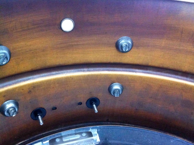 4. Butt plate was re-drilled by a drum shop here in Oz.