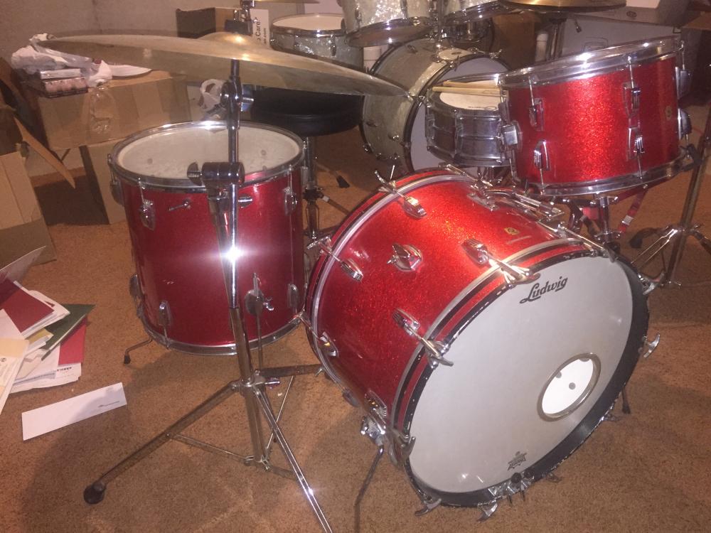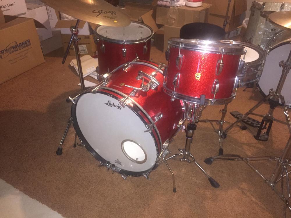 $1199 Just got them and decided to sell. They look amazing and sound amazing. These are a matched set. The only date I found was on the rack tom and it is from March of 1965. The sizes are 14x22, 9x13, 16x16 and matching Supra (5x14). Everything appears to be original. There are some dings on the kit and the Supra has some typical pitting. The only issue is the with the inlay on the resonant side bass drum hoop. It is basically being held on by the tension rods and there is about a two inch area that is missing. Both hoops have typical paint chipping and foot pedal rash. The inside of the shells are in great shape and the white paint seems almost too good to be true. Also, each drum has one of those tags from the 60's or 70's that says "property of John Smith." I thought it was cool so I left them on. I am positive these will come off if need be. I prefer local pick up but will ship or even meet within three hours of St. Louis. I am also open to trades. Full disclosure. I am selling these because I am not really a fan of red sparkle. I thought I would love it, but I prefer the pearl wraps. So, basically I am admitting that I am vein. Call Vern at 314-650-6425.