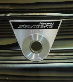Early Standards had the white reso-coat interiors for the first year or so before switching over to the gray Granitone style paint. White interiors would be consistent with the low serial number shown on the badge. I think that is a silver (nickel plate, not aluminum) grommet there as well but with just enough tarnish to it to make it look brass in the photo.