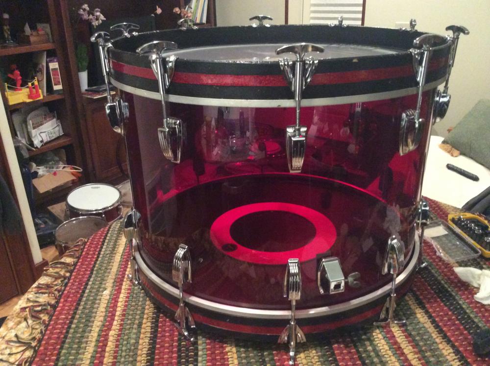 14” X 22” bass, 16” X 16” floor tom, 8” X 12” ride tom, 9” X 13” ride tom, 5” X 14” snare