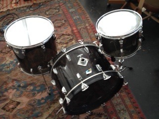 Up for sale are some Ludwig Vistalites in black smoke. Sizes are 8x12 (not shown in pics), 9x13, 16x16 and 14x22. There are minor cosmetic scratches on the shells but no cracks. Bass drum badge is bent a bit and there is some rust/pitting on the hardware.