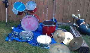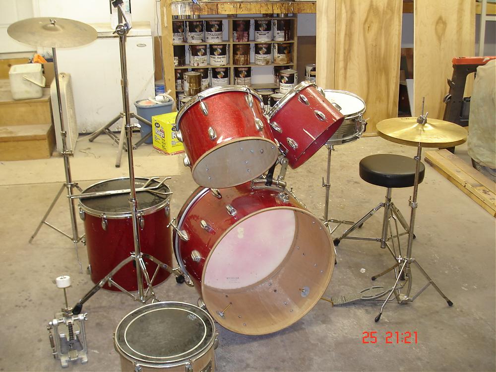 The hi hats were cheep Pearls, the other cymbal was a cheep zildian in very poor sahpe. Drums are close to junk but I will use the hoops. Anyone need some lugs?