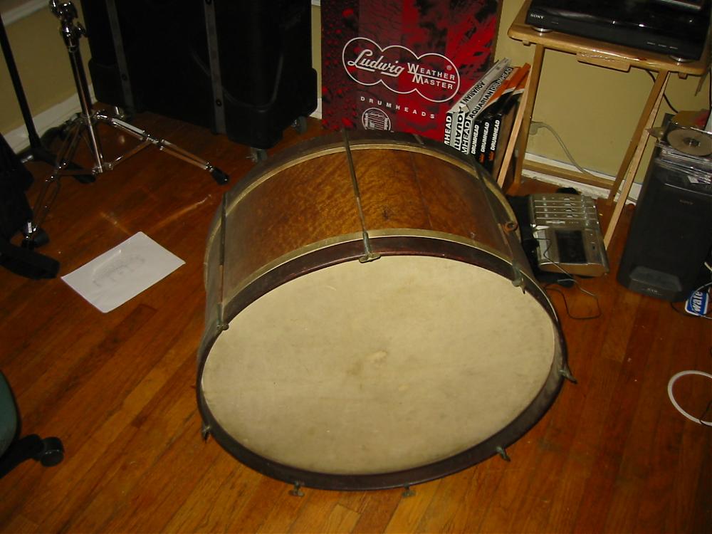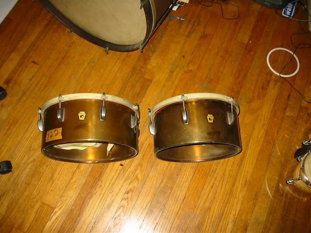 The owner of the market said the 3 drums had been up there 30 years. I drew a picture of the Ludwig badge since it is hard to see on the drum. Can you guys give some history about these 3 drums the timbales do not have serial numbers. The bass was near an ac duct so it is riddled in hard dust. The market also had a fire once and there is some smoke residue on these drums. Can you guys give me some good advice on how to clean these. Also the copper timbales have some pitting how can i clean this. I was lucky enough to find an original stand for these from another forum member.Thanks for your time everyone.