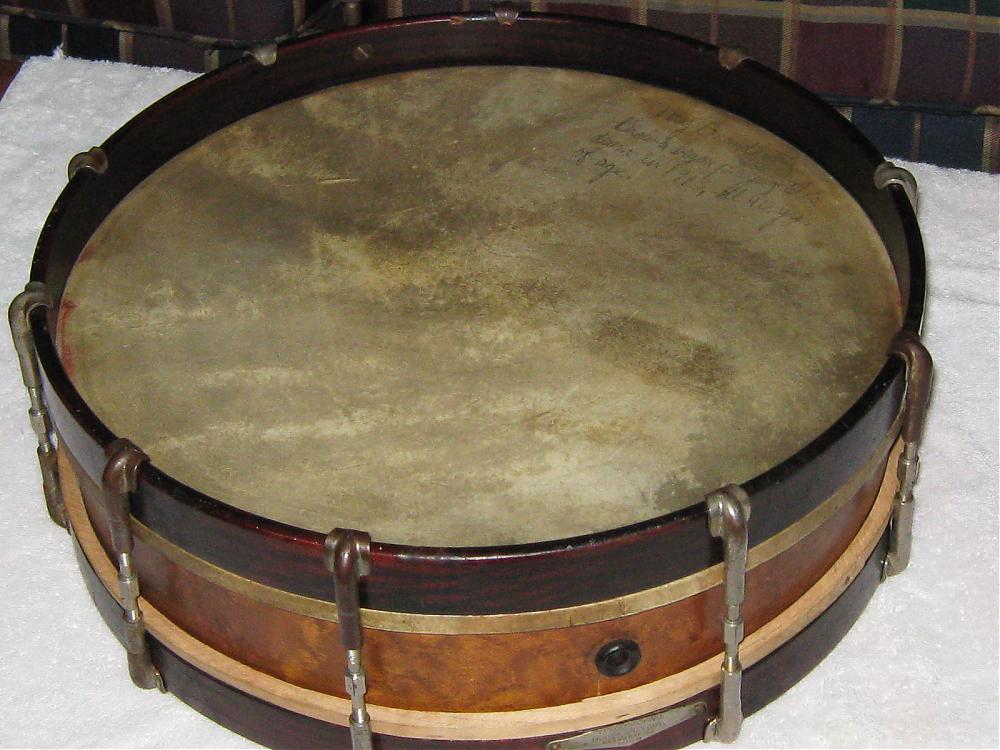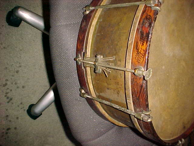hi all,, iused to deal in old musical instuments and bought this snare drum primarily because of the drum sticks that came with it. the drum has a paper label inside that says Manufactured by Lyonand Healy manufacturers and dealers in "Musical Instrruments " factory Randolph st. and Union Park salesroom Cor. wabash ave and adams st CHICAGO. It has a brass shell and there are only six of the eight rods and clamps (i think it had eight originally) The heads are calfskin top and bottom and are very old ( in good condition tho) the snares are gut . the rims look like they could be mahogany (don't know )dark wood in good condition. I don't know how to post pictures on this site yet.. I boughtthese about twenty years ago because i thought i might eventually do something with them ,but now i want to sell instead , but have no idea of the value, opinions welcomed. The drumsticks are old and they are dark maroon colored almost black, they are counterbalanced on the rear end with brass covers (about three inches at the back end of the sticks), they just float in your hands. anyone who has any idea what these are about i'd like to know.