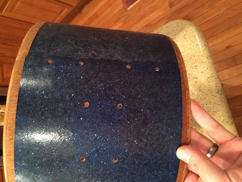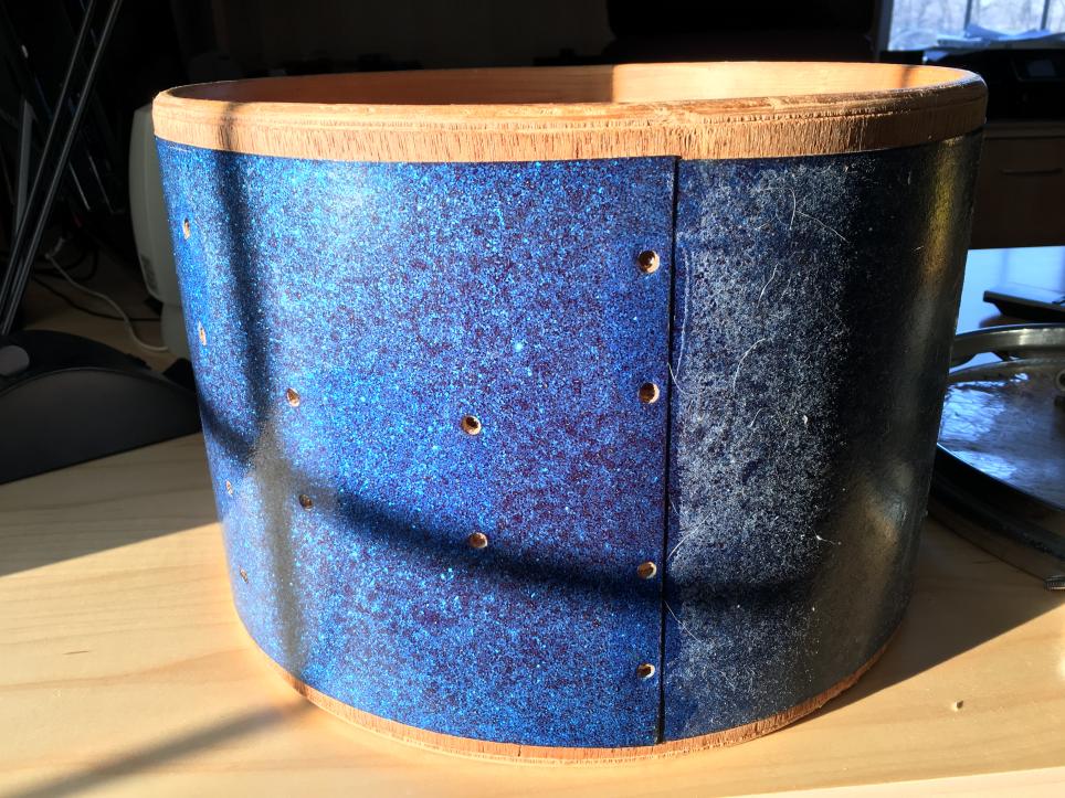Well, I still haven't gotten around to removing the contact paper from the bass drum; in fact that will be the last drum I tackle because I cracked about a 1x2 inch corner on the seam of the original wrap which the contact paper is keeping from falling off the drum. It's repairable though and won't be seen as it's on the bottom of the drum.