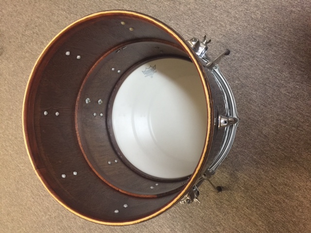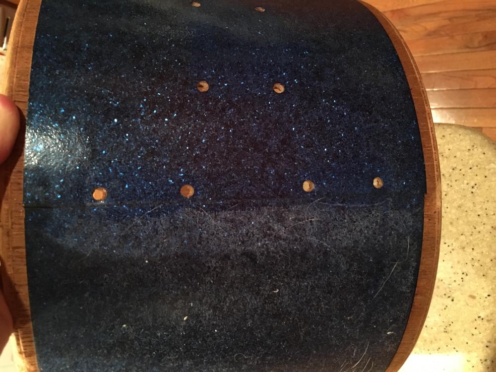 Thinking out loud here: Because there are so many parts missing on the whole kit, I'm not too concerned with keeping it all original. I'm leaning toward making this a nice looking player's kit, restoring it as inexpensively as possible (but not cheap). So with that said, I'm trying to decide what to do about the bass drum hoops. The drum only came with one; it's metal and either painted or coated black, but not in the greatest shape. The inlay is in tact, but really dull. So my dilemma is, do I try to restore the hoop and buy a second metal one, buy two new metal hoops, or go with wood hoops? And secondly, the inlay might be salvageable, but a new piece for the second hoop would likely not match very well (then again it may not match the whole kit all that well).