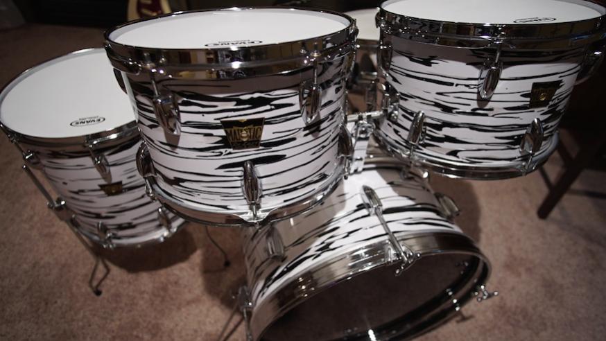 More recently I found an orphan Majestic 14" floor tom with matching off set lugs. Super clean hardware but missing legs. Crappy red sparkle. $100 for that but it had the badge and was in nice shape.