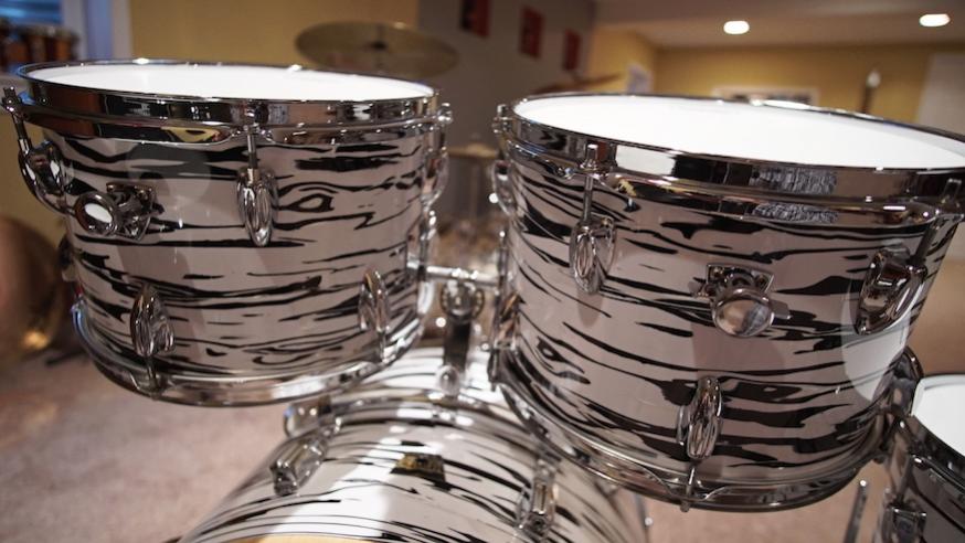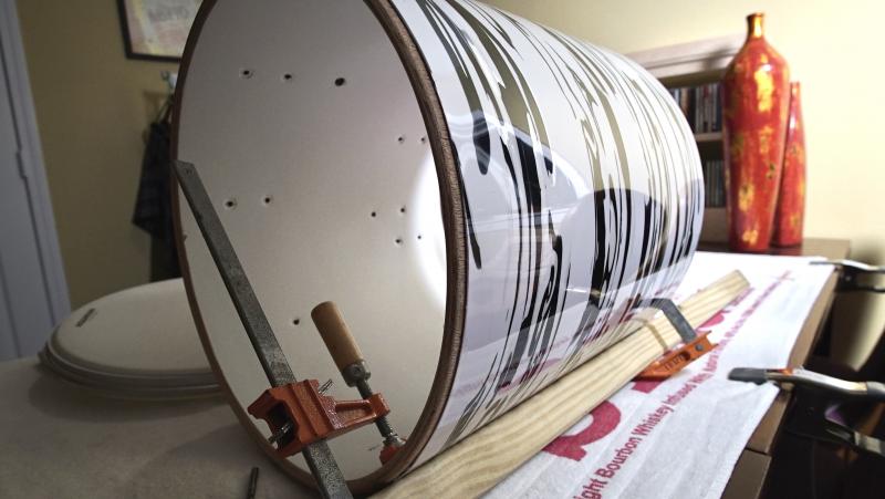 I found Rescue Drum Group on line and while they didn't have as many choices, their warps were a little more exotic at a reasonable price. I bought 2 sheets at $75 each to wrap the four drums and have enough left to do the bass hoops and a snare if I want later. Pretty thick stuff but easy to work. I used one piece of super duty carpet tape and let the hardware do the rest. I used sections of the old wrap as cutting templates. Tedious but pretty easy overall.