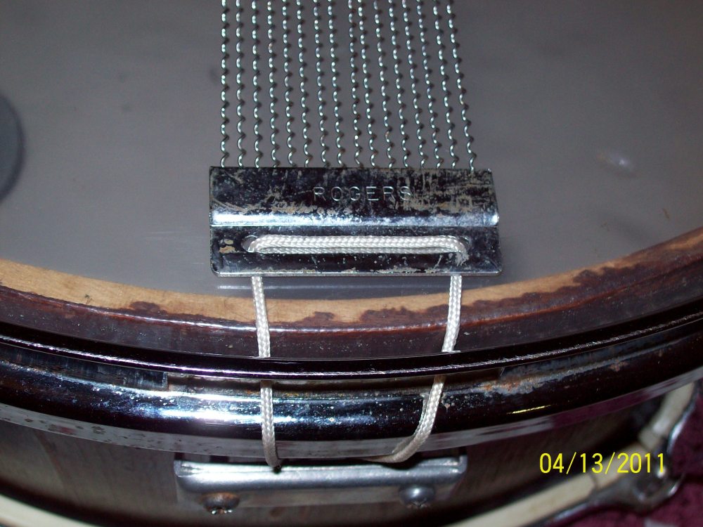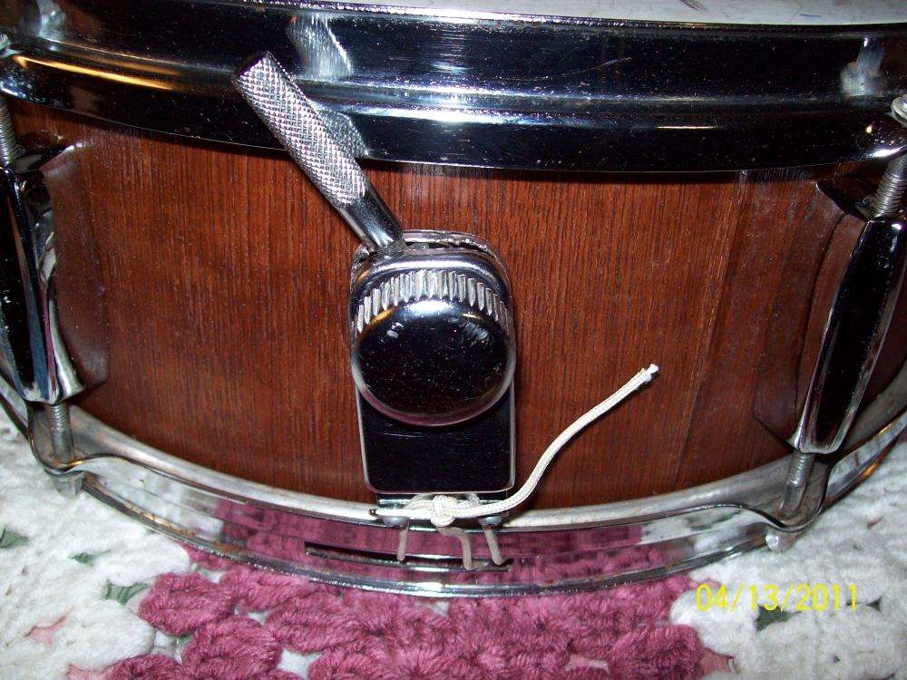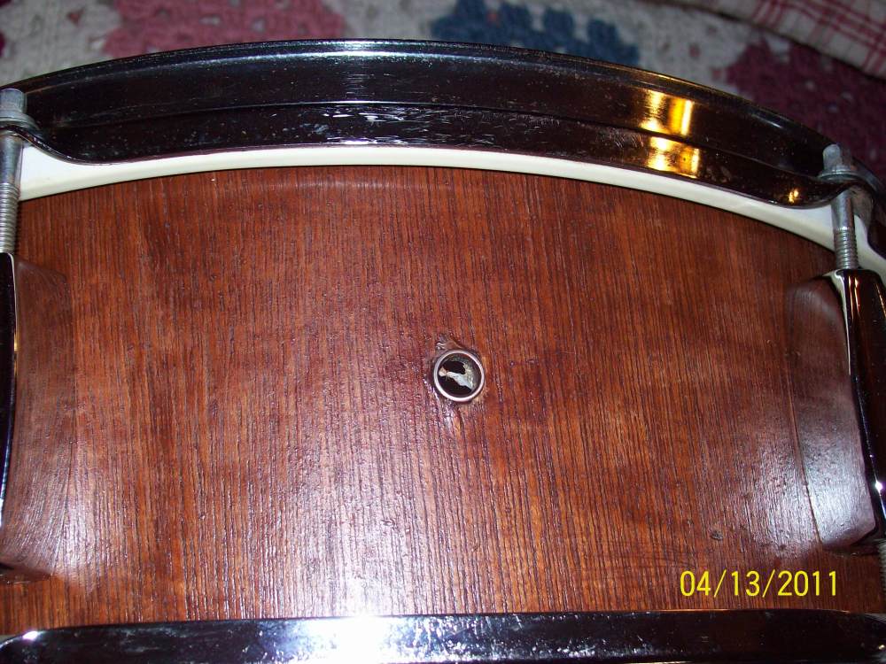 After purchasing (local CL for $50), I think that the stained wood snare was wrapped and someone removed & stained.