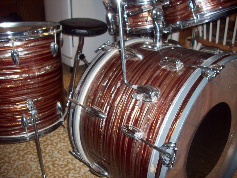 Looks like you got it all, original pedal and throne. These are very early, like 64, 65 drums. Very cool. I would like to be in line for the sale. This looks like a museum peice. Very clean, and not much used. So the snare is a woodie, it will be a handful to tame. Let's get the rest done first, then you can call me and we can work out the snare. PM for phone #.