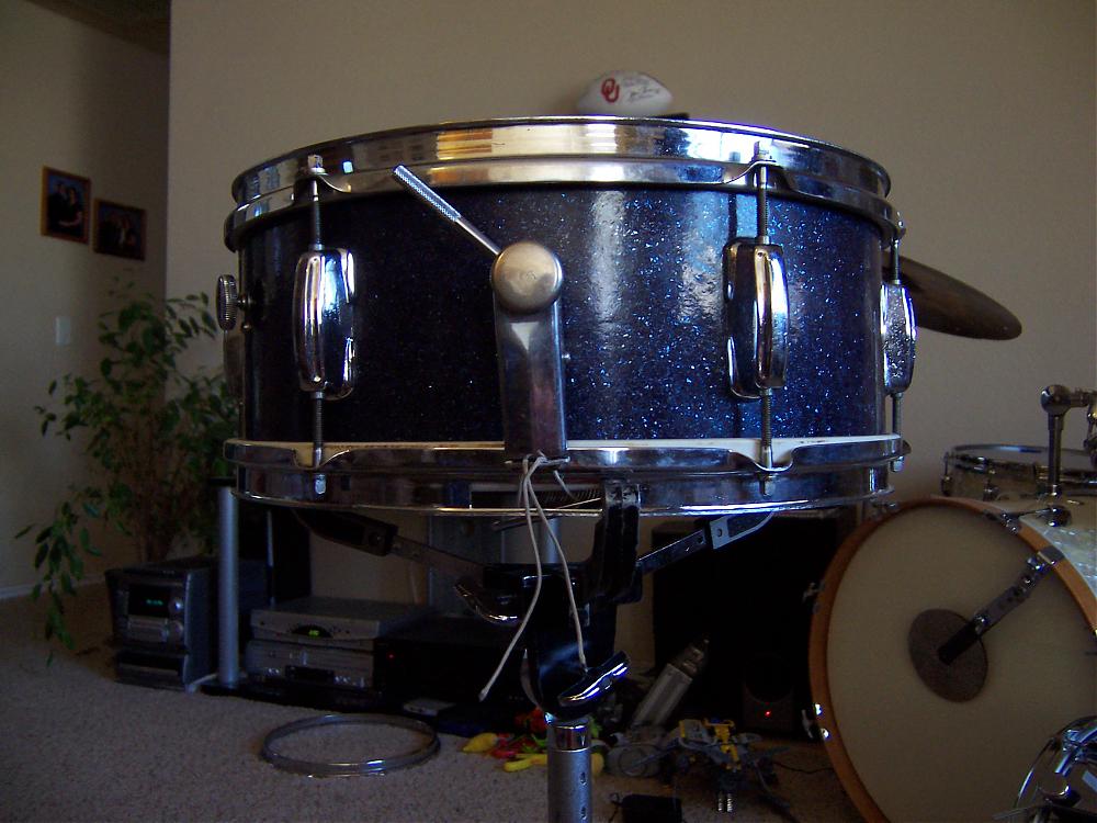 Blue Sparkle Majestic, likely 1968 year model, 9 ply shell, no re-rings, 8 Slingerland Sound King style lugs, Star designation Type "A", #921 snare lug.