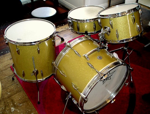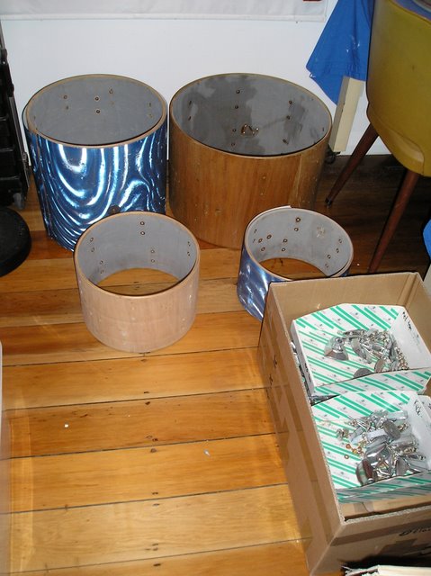 I have since sold the kit to a local song writer who is using it in his studio. The kit owed me about $100. The wrap was a gold sparkle vinyl from a fabric store. The main reason for using the kit to record was it was set up for long periods (a year or so) in the studio, bathed in sun and I didn't want to subject my more precious kits to that punishment. The wrap and my gluing held up well.