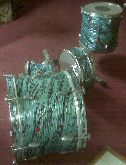 In the early years, this wrap is also known as Blue Willow. I believe Blue Thunder came a lttle later as these look to be 68-70 model drums. I would need to see the snare closer and clearer to tell, but they appear to be early built, and the shells would be thinner than 6 ply.