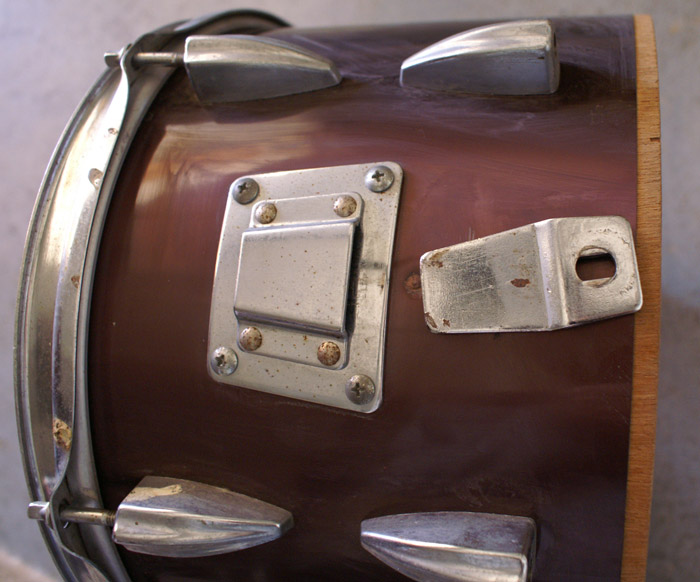 hi !it must be the season !After my wife gave me a Trowa kit in september, now my singer Kate brings me a Morris kit ! And I'm just a guitarist !! :)Information on the web are very poor... I guess is a low end brand, some local distributor brand for example, made in Japan.It was owned by his uncle, died in 1985 at 30 years old, and as far she can remember, he bought it in 1970 ou 71.Kit is : 20" BD, 14" floor tom and 12" tom.Again, few parts are missing. I'm unlucky again with hit-hat, but there's the cymbal support on the BD.The system to hold the tom is missing, or at least incomplete, please look at the pics, and help me because I really don't understand ! You can see the two parts on the BD near the holder to show what I have, same with the tom, there's a small plate which slides in the holder, but I don't know how to connect this plate on the holder of the BD.I have the six T-rod for the front head but the ring is missing ! I guess it will be very difficult to find a purple one, and I will be happy with a black for example (I could put it on back).cheersPhil
