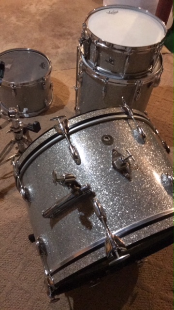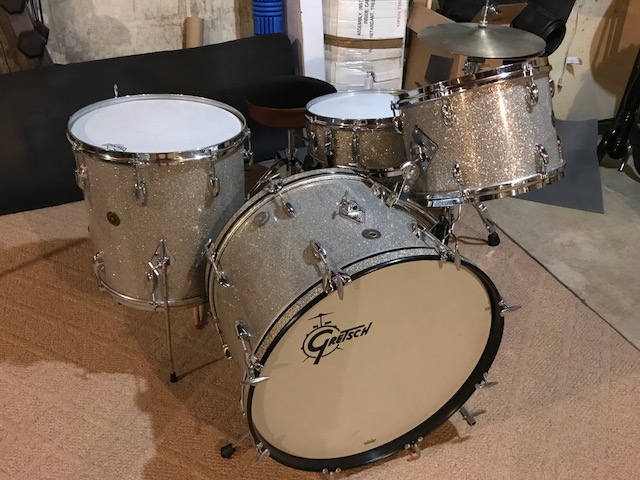 Hi All - Wanted to share this with you and I hope for some insight as to roughly what year they are from. I am an avid Gretsch fan for many years. I own 3 (now 4) Gretsch kits. I had the pleasure of working for Kaman (KMC) for many years and ended my tenure there as the Gretsch Drums Product Manager. The brand is very near and dear to me. I was never able to get my hands on a vintage kit though... Well it finally happened. I traded my 66 Ludwig kit away for this. 22/13/16/snare in silver glass. Sorry there are only a couple of pictures. I set it up in my basement to check it out and tweaked it a bit. Three days later it was on the gig. I did not take the snare out as it's going to need more tweaking. The toms and bass drum sound HUGE. I am very happy. Anyways, from what I can tell, all the important parts there and everything looks to be original. There are a few things that I am wondering about...