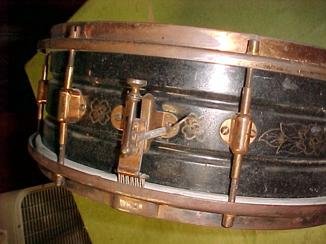 Hey guys I scored my first engraved snare. It's a little lower on the food chain than most engraved drums but still really cool. It's an early Leedy Black Elite with Multi-Model engraved on the hoop. Shell looks to be in pretty good shape other then a slight indentation over one of the strainer holes. But there are no extra holes or anything crazy. The gold paint on the hoops and lugs is pretty far gone. Look okay in pictures but trust me they are jacked.