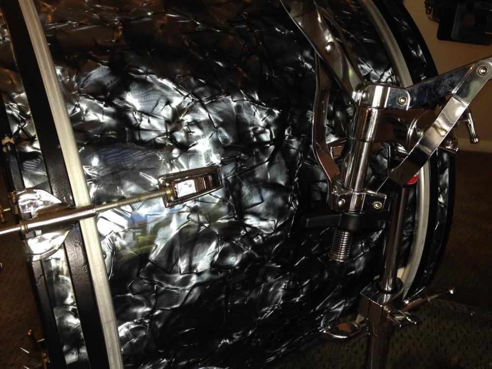 I originally found the bass, snare and 13" tom on Craigs list for 15.00. The floor tom was missing but I ended up finding one on ebay for 175.00 + shipping, so it cost around 200.00 for it. So this is my 215.00 Kent set in 14x22, 9x13, 16x16 and matching 5x14 snare. The worst thing about them is the four extra holes in the bass drum where somone installed a rail mount at one time. I need one more bass drum claw and t-rod, plus both spurs to make this complete. If you know where I can get those parts please send a PM.