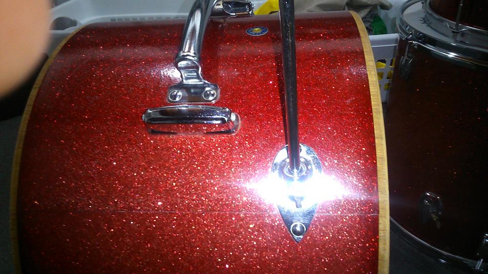 I already have a red sparkle kit, so I am going to most likely re-wrap these (that way, I can cover the original lug holes for the floor tom). I am NOT concerned about resale value; I just like to have fun fixing them up and have fun playing them! Any suggestions for my choice on wrap? I want to keep it authentic as far as MIJ colors/wraps were concerned. I was thinking wither WMP or Blue or Aqua sparkle. I already have MIJ Kits in Red Sparkle, Blue Onyx, Red Onyx, BDP, Gold/Orange Sparkle and white satin flame, and other kits in Silver Sparkle and Green sparkle. Other than what I mentioned above, did I miss any "traditional" MIJ wrap choices? Was Aqua Sparkle even available back then?