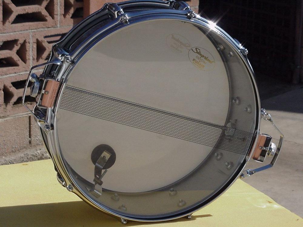 Since you mentioned it! This is my SSK (Super Sound King) that I had back in 2003. The SSK sports NOS Evans Cad Cam heads that I found! The drum came to me with no snare wires and I was able to determine that Puresound RK wires for the Clam-shell strainer would fit. Even with the COB shell, I never felt it sounded that good. Still, I should have kept it!