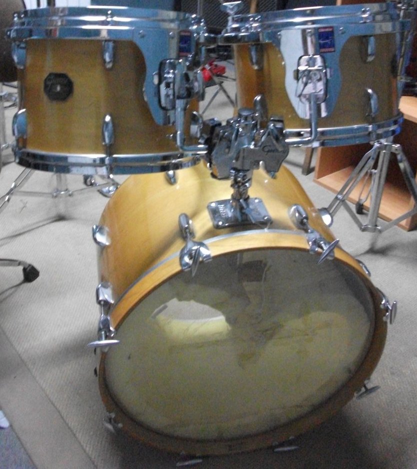 I have a late-70s Stop-sign Gretsch kit (a “Studio” model, according to the 77 catalog), and I decided to get rid of the original tom holders - the infamous “nylon-ball-half-buried-in-the-shell” - because I wanted to have the 12" and 13" toms closer together (the original holder does not allow that).