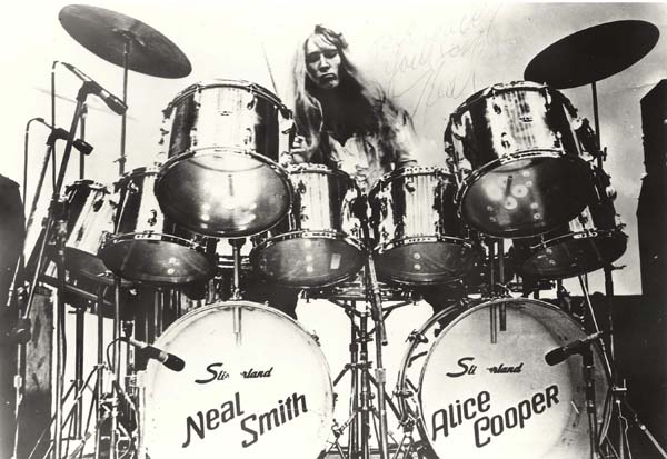 I loved his unique playing approach. Although he would sometimes ride on one of his crash cymbals, he usually chose to "solo" throughout a piece similar to Keith Moon only less obnoxiously and more controlled (save your defensive responses Who fans). While Neal never played anything technically difficult or complex, I was always impressed by the odd and imaginative ways he chose to accompany a piece, such as the "Bolero" riff repeated in School's Out or the simple bass/snare riff throughout Billion Dollar Babies. Listen to Blue Turk off the School's Out album though, and you can hear his jazz roots.
