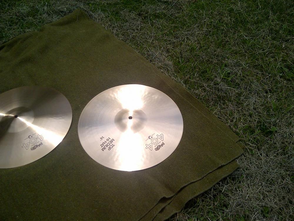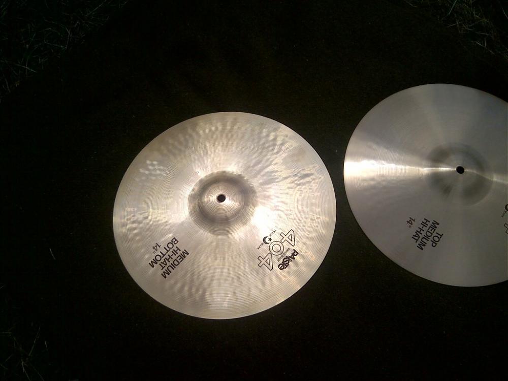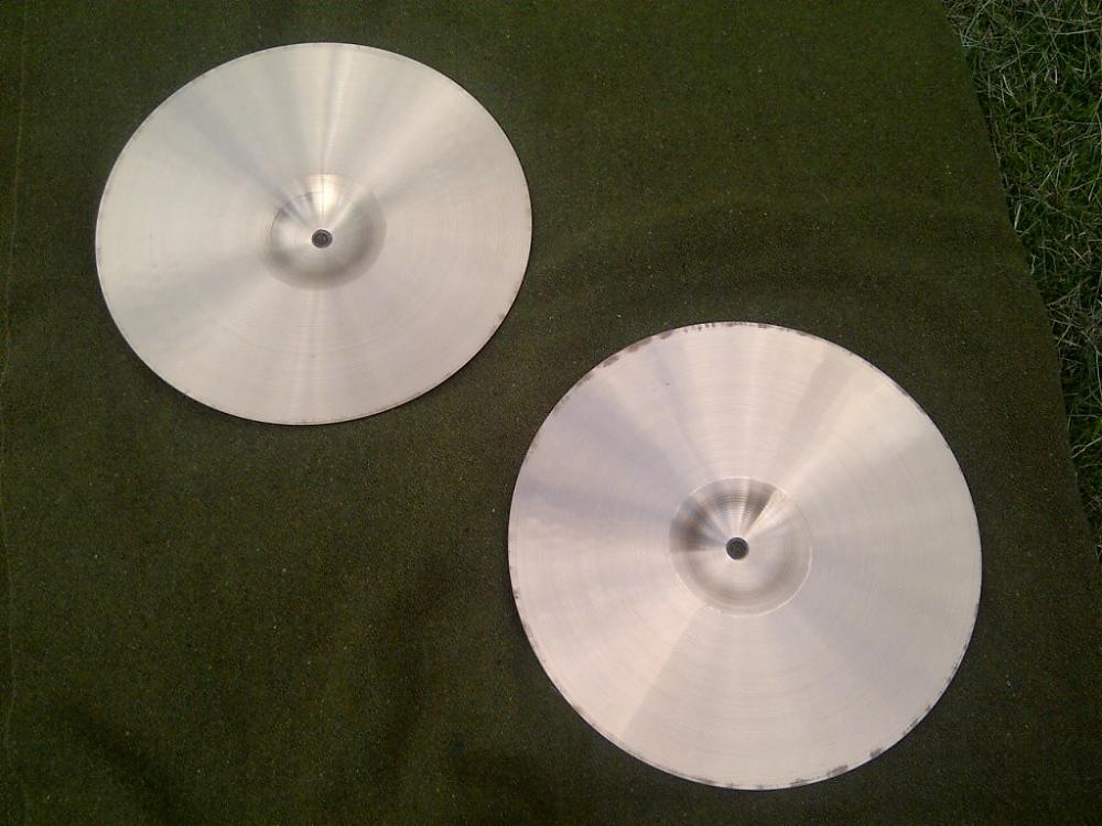 You would think these came out of the sleeves moments ago! Very Strong ink labels / logos and beautiful shiny finish! Not even stick marks on the top, only a couple scuff marks near the bell - and I think that is about it.....outer edge shows use (insides) as with all HH cymbals. These would be museum pieces if not for any NOS.