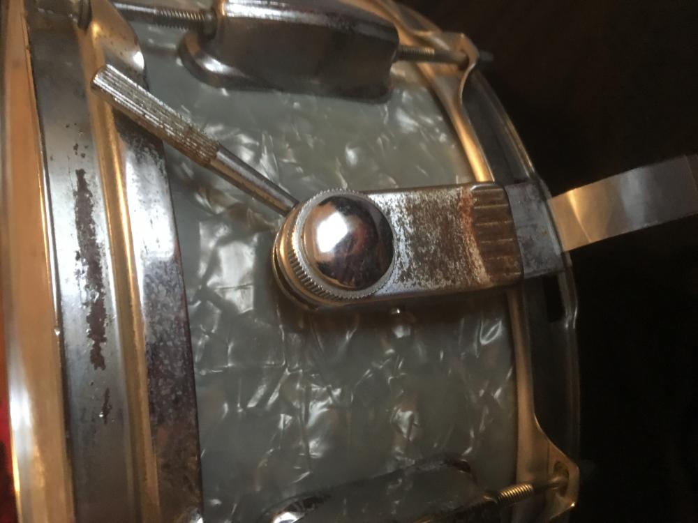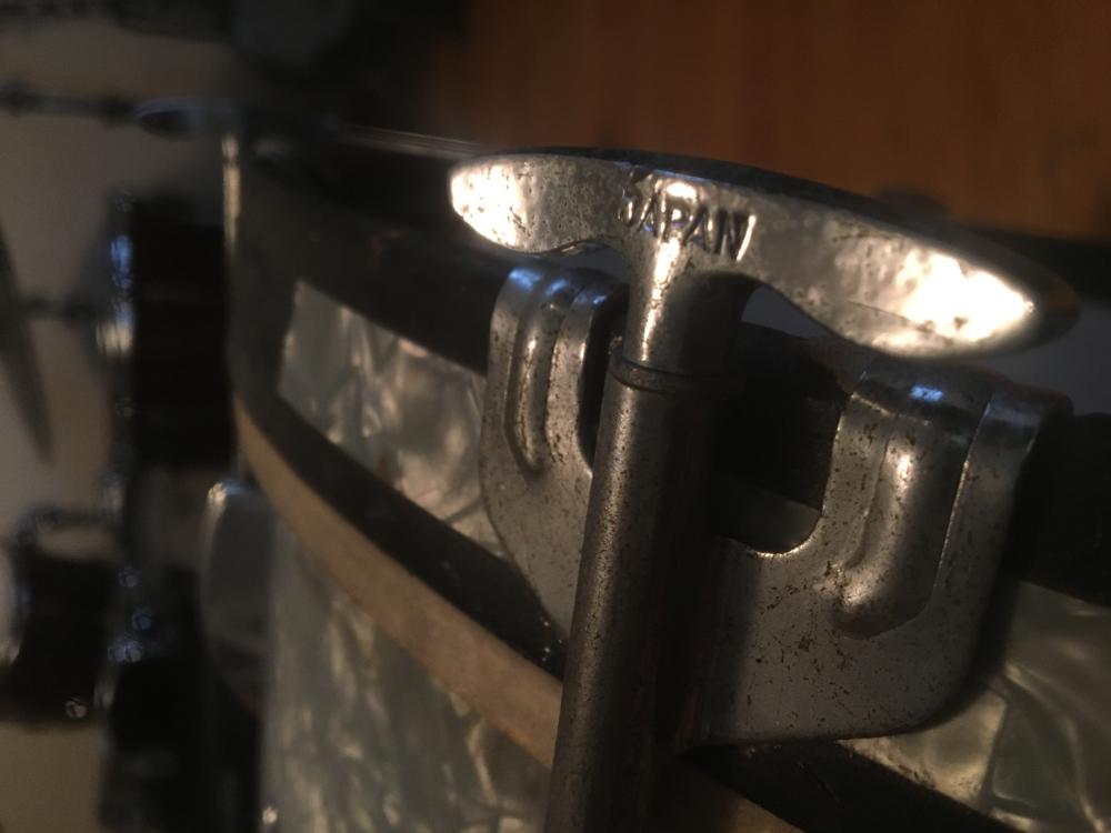 That hardware is very odd. The steel rims are odd, the bd lugs are odd, the T rods are odd.The tom mounting arm...you guessed it...and the snare strainer. I have never seen those parts before.