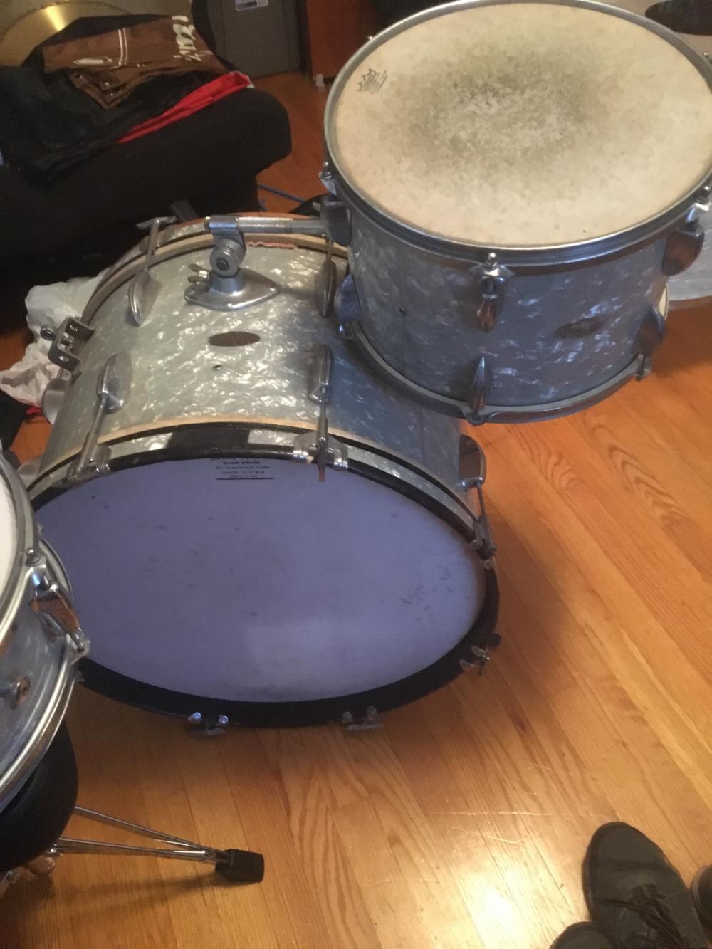 Nice. Yeah, I'd go with my original thoughts. My Stewart has the same three re-rings in the bass drum. I don't recall seeing stick saver hoops on your kit, which mine has...but maybe they were replacements, or its another version of a kit, from the same factory. There were lots of names. Stewart kit's were copies of Slingerland's, of that era...same style lugs, stick saver hoops, etc etc.