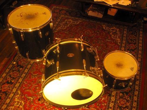 According to Rob Cook's book, the black interiors were early Grossman era drums, and preceded the flat grey interiors. Serial numbers should be not more than 10000. I'm guessing that they date from the mid to late 50s, but I'm sure the Rogers experts will chime in. Cool drums, but the lugs are known to be somewhat fragile and don't lend themselves to modern tuning with plastic heads.
