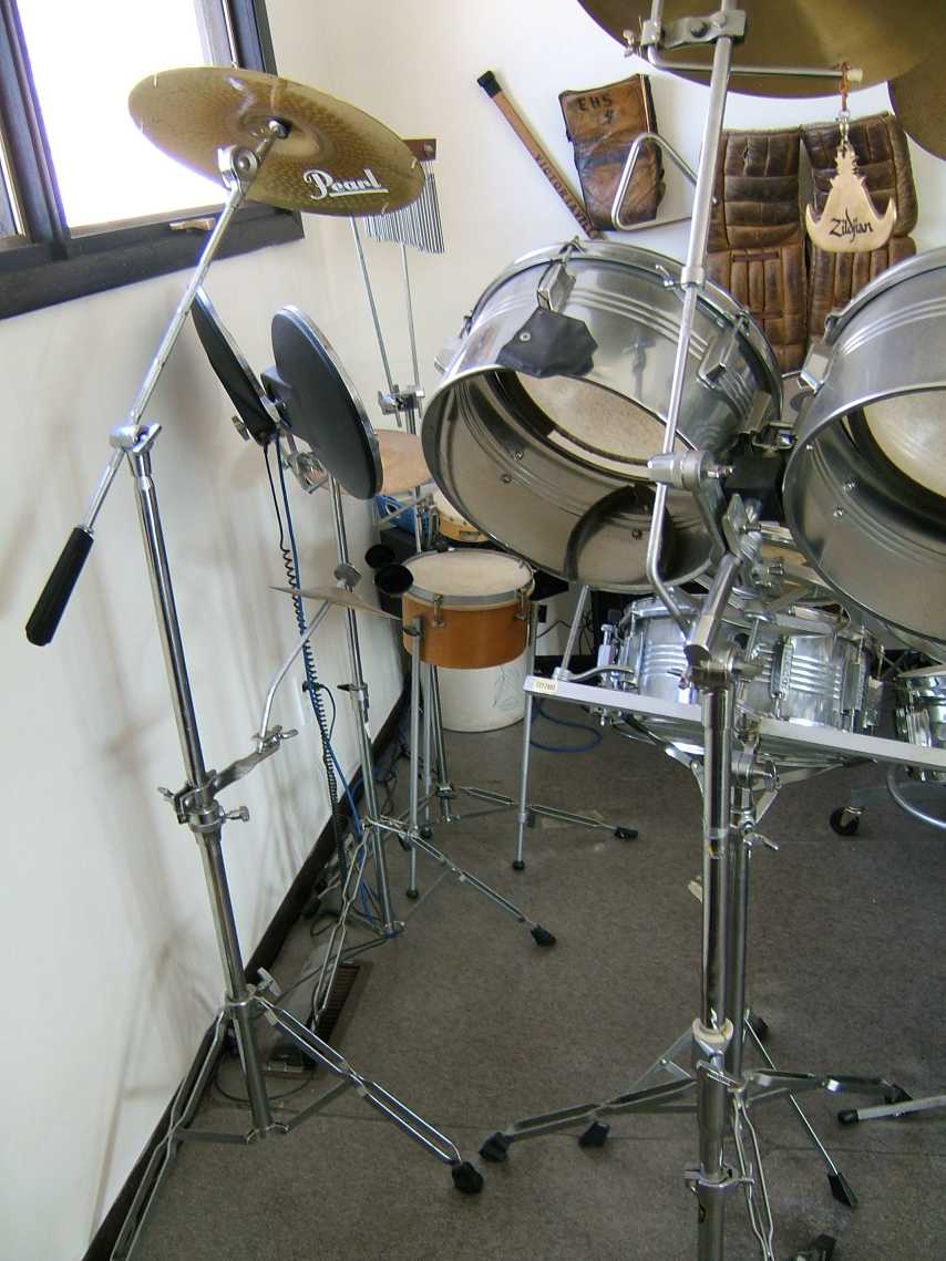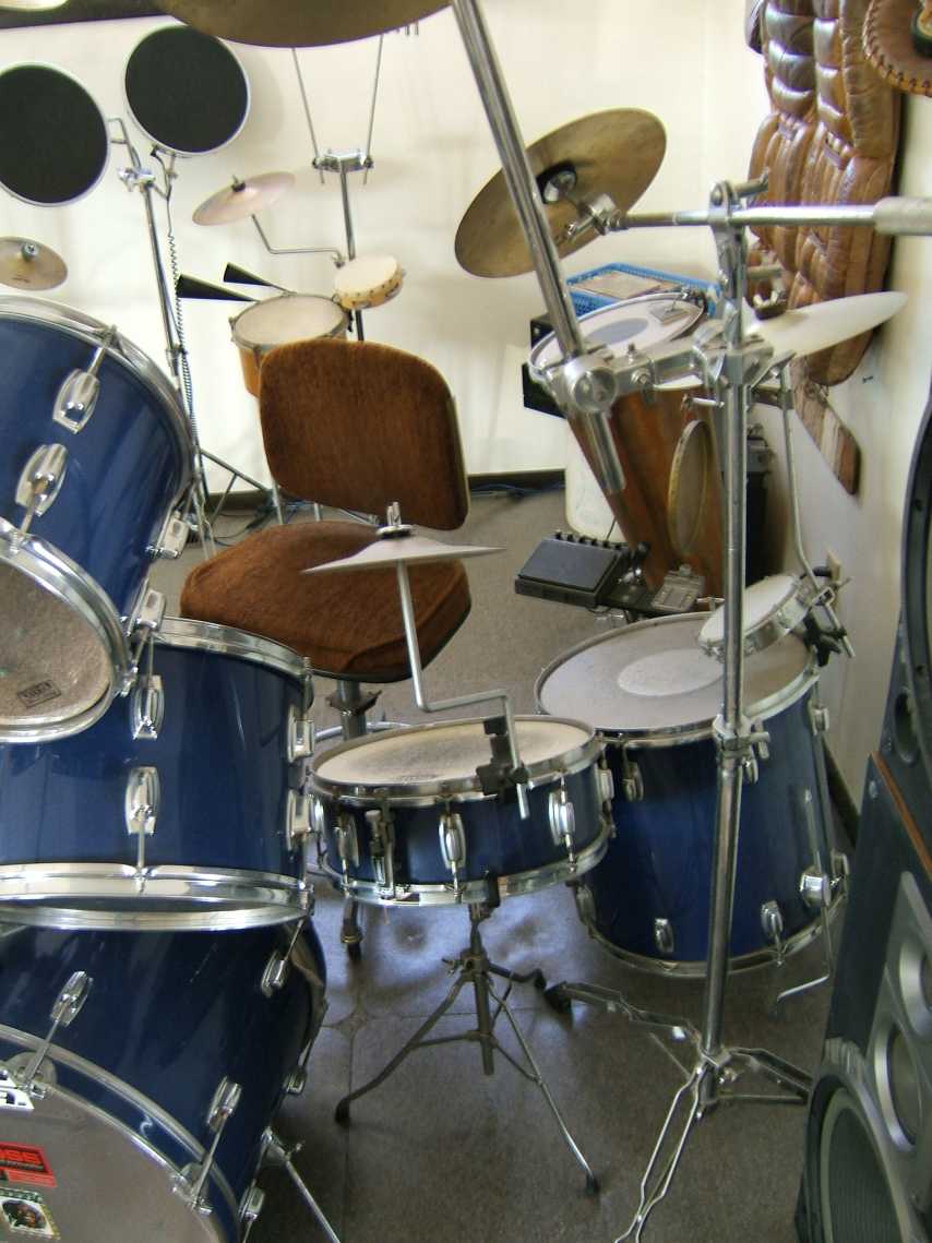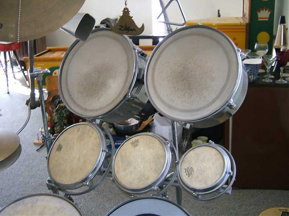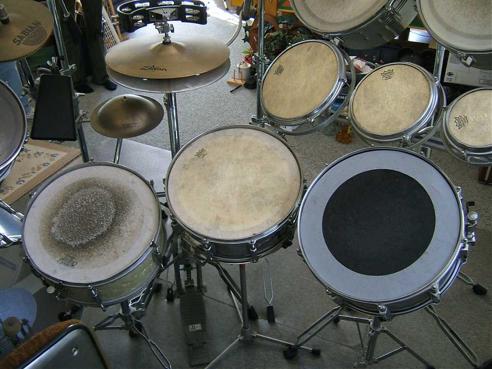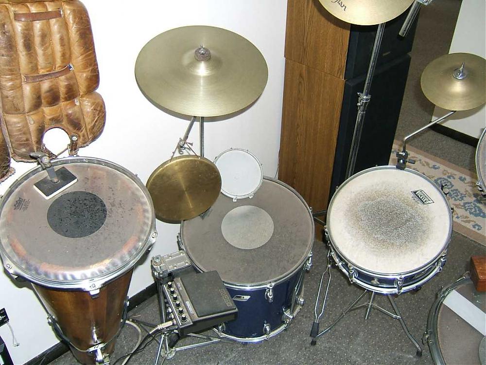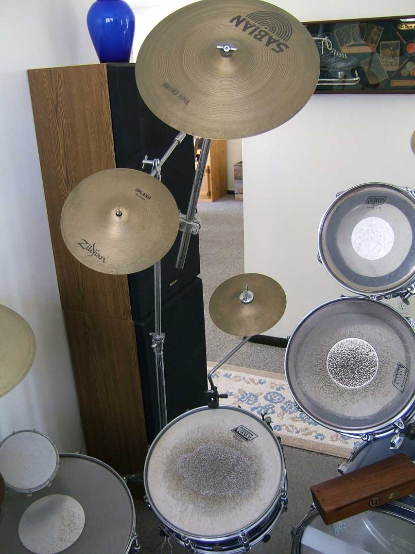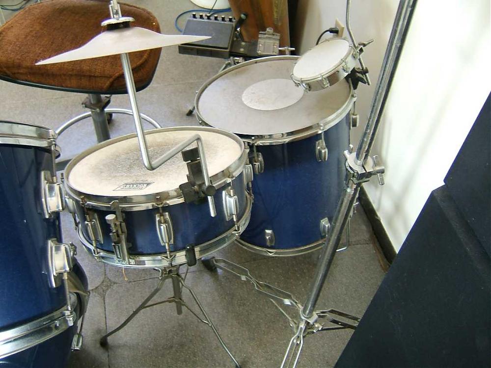 To be honest, the biggest issue with this stuff is that it needs to be cleaned up. It's pretty dusty right now, but otherwise the stuff is in pretty good condition. Some of the heads are all little beat up and a couple of the snares (the part across the bottome of the snare drum?) are broken, but the shells all looked pretty good to me. Minimal oxidation, but some bumps and bruises here and there.