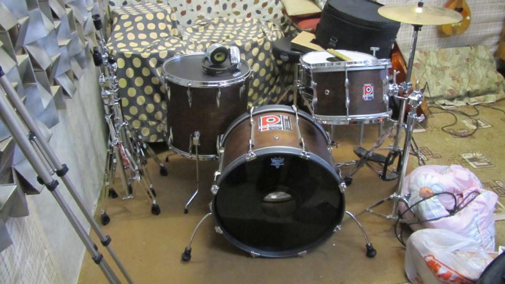 Drums: 20*14, 16*16, 12*8 (may be 9 not sure about exactly depth). 3mm mahoghany with 10 mm reinforcment rings. Floor tom has larger diametr so modern heads desn't fit. It was cutted slightly for modern heads.