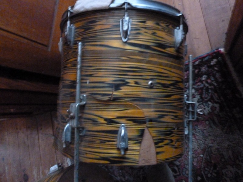 thanks Kenwood, I never heard of Miller drums... good to know what they are. I recently acquired the drums but they had been abused through the years the 12" tom is in really bad shape, the bottom r-ring is smashed and some of it is missing. And that bass drum lug broken off at the screws. the floor tom is missing 2 lugs as well. the lugs are the same size so I could take another form the floor tom. I suppose I could see what it sounds like with one head on the toms since the bottom rims and tension screws are missing too.