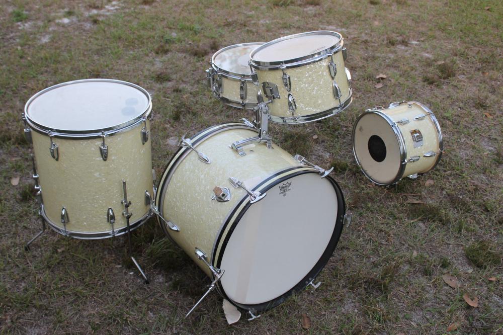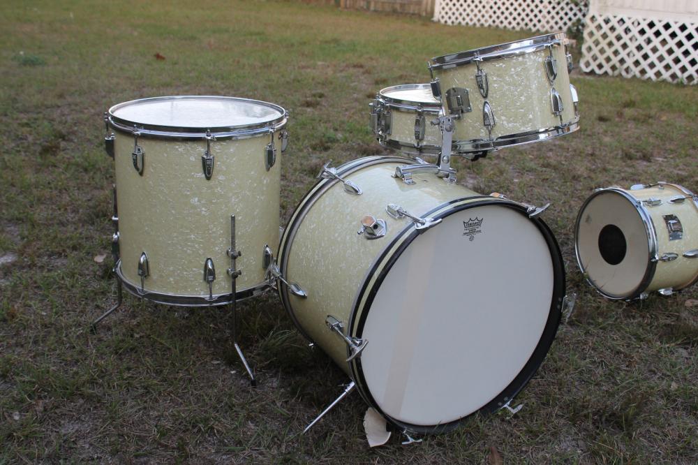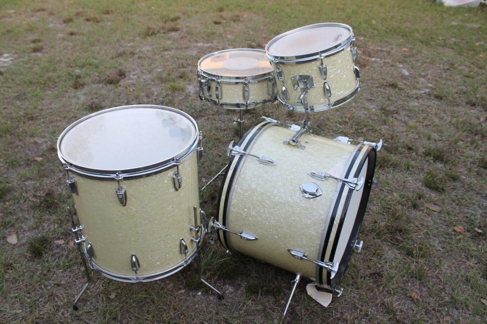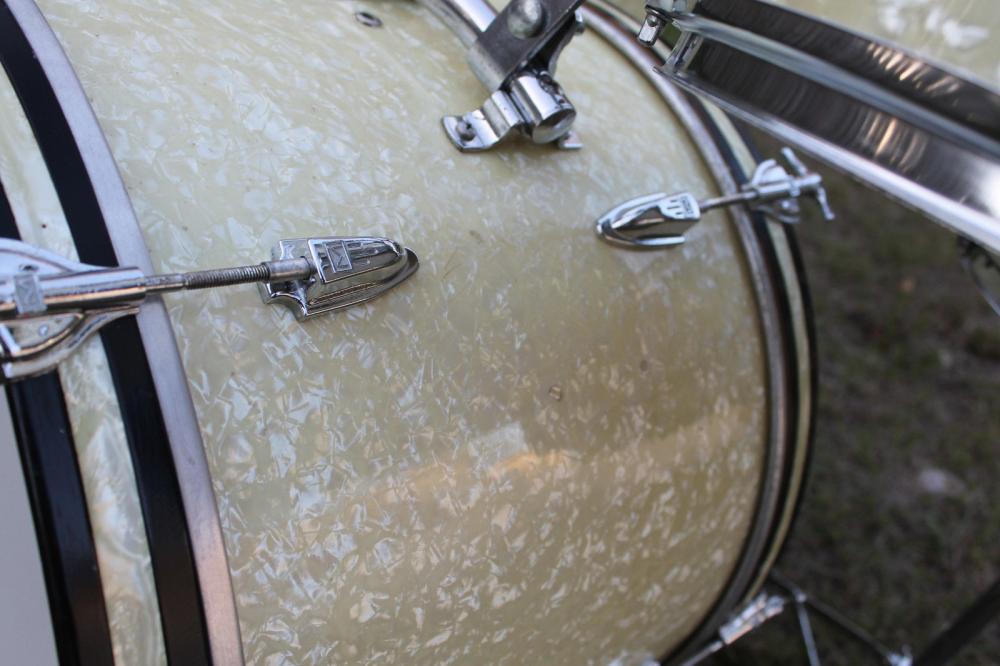 This kit was bought in 1965 with the 20,13,16 and matching snare and the interiors are white just like the 60's Ludwig. The 12" tom was bought a couple years later and has a clear maple interior. Which is the same for ludwig. starting with the clear maple 3 ply shells in 1968.